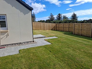 Gardens will be turfed to the front and rear, with paving slabs leading to a rotary drier. Rear gardens will be enclosed with 1.8m high scalloped timber fences. To the rear of South of the development the boundary fences with have feature pillars to some gardens. Gardens will be graded to the natural contours of the land and may contain slopes.